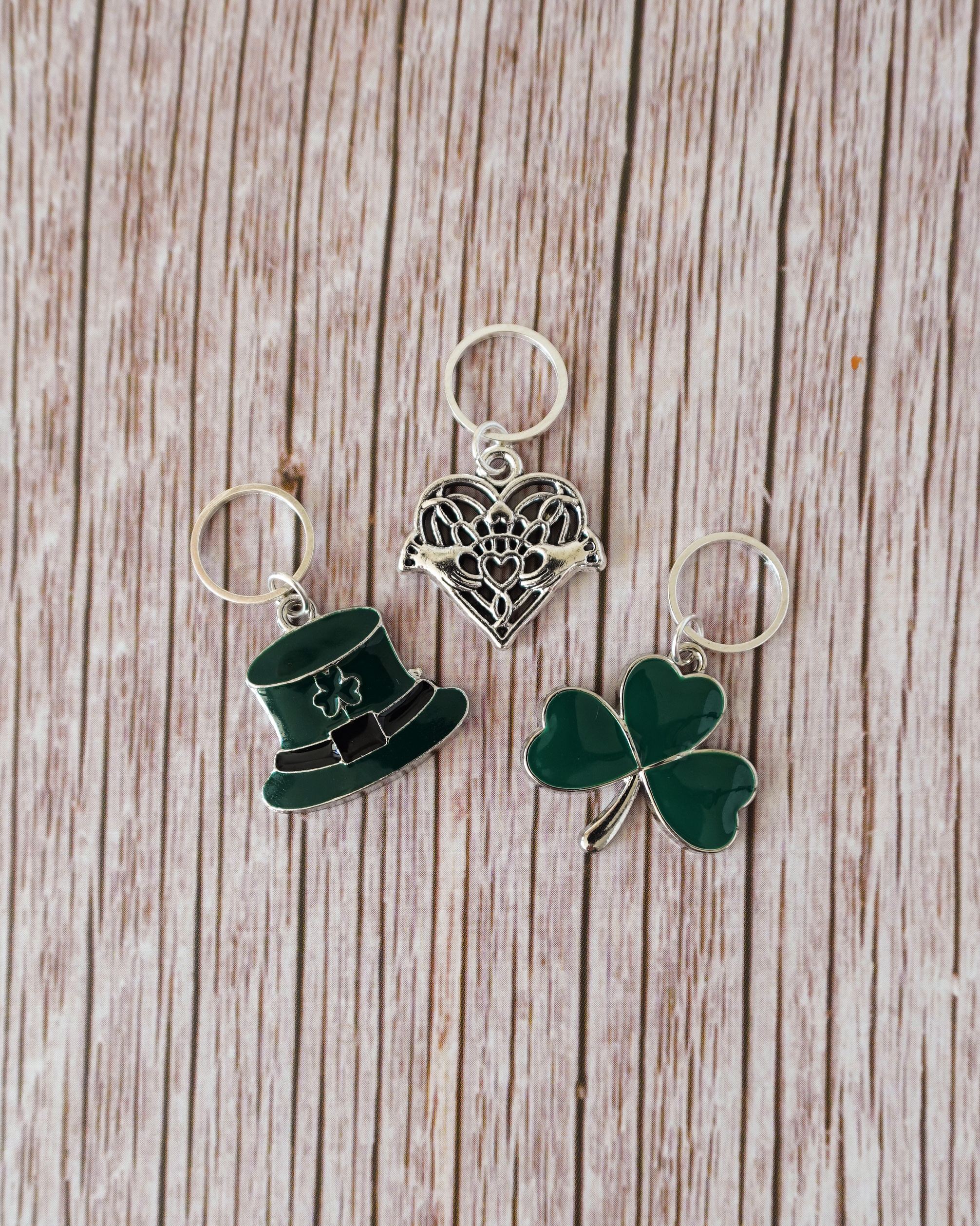 Le lot I love Ireland #4 est composé de 3 anneaux marqueurs qui rappelle les couleurs et les symboles irlandais à ton ouvrage.