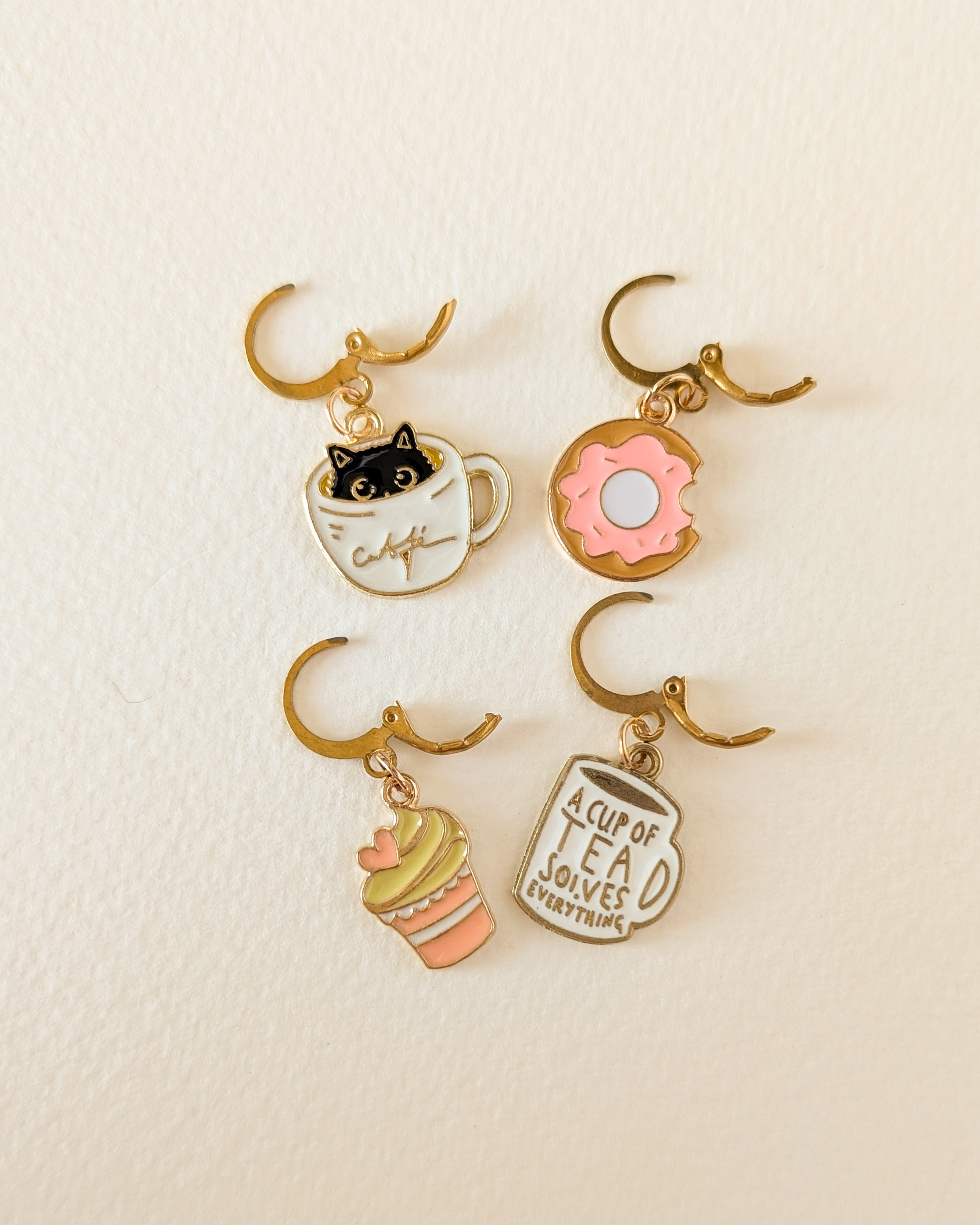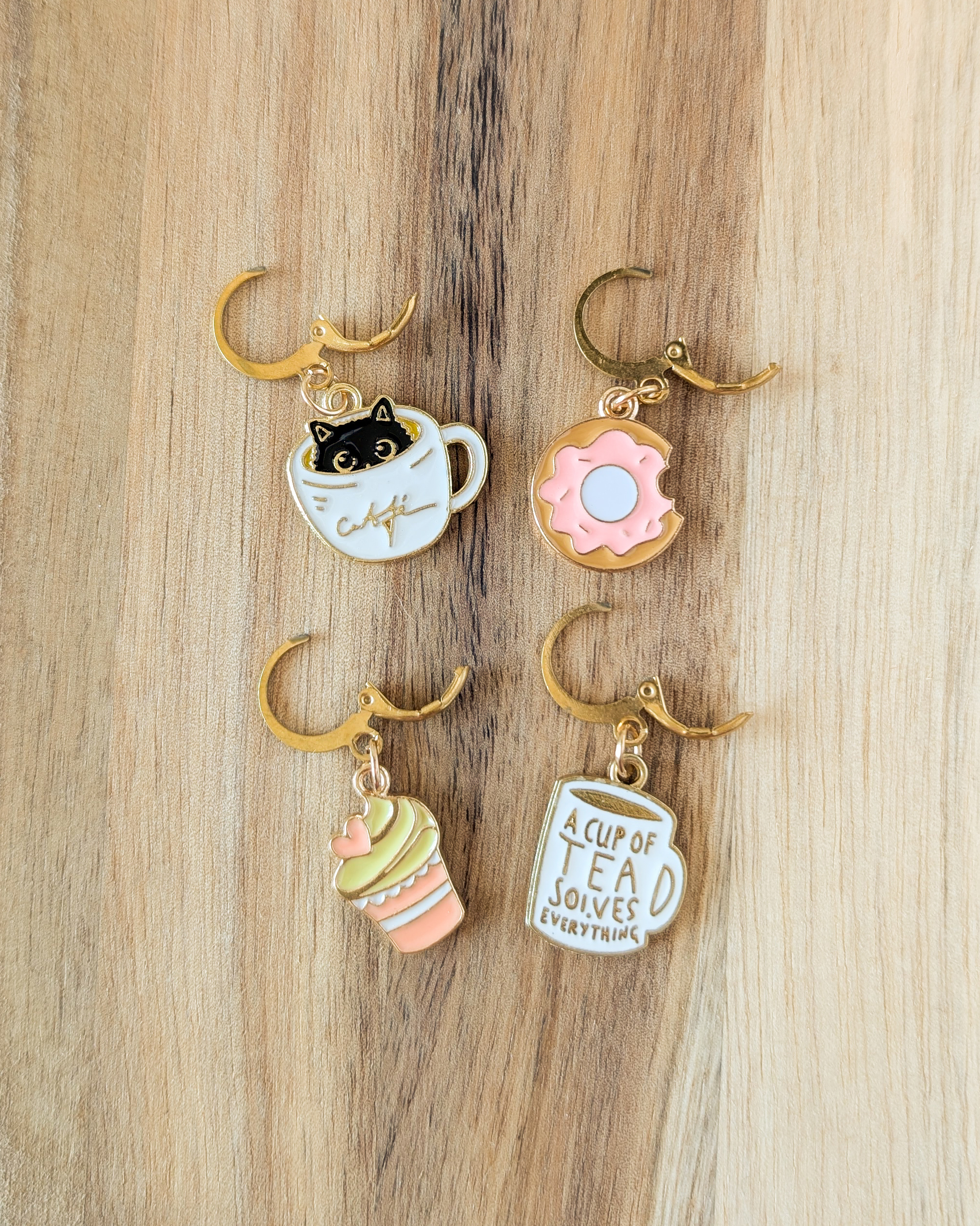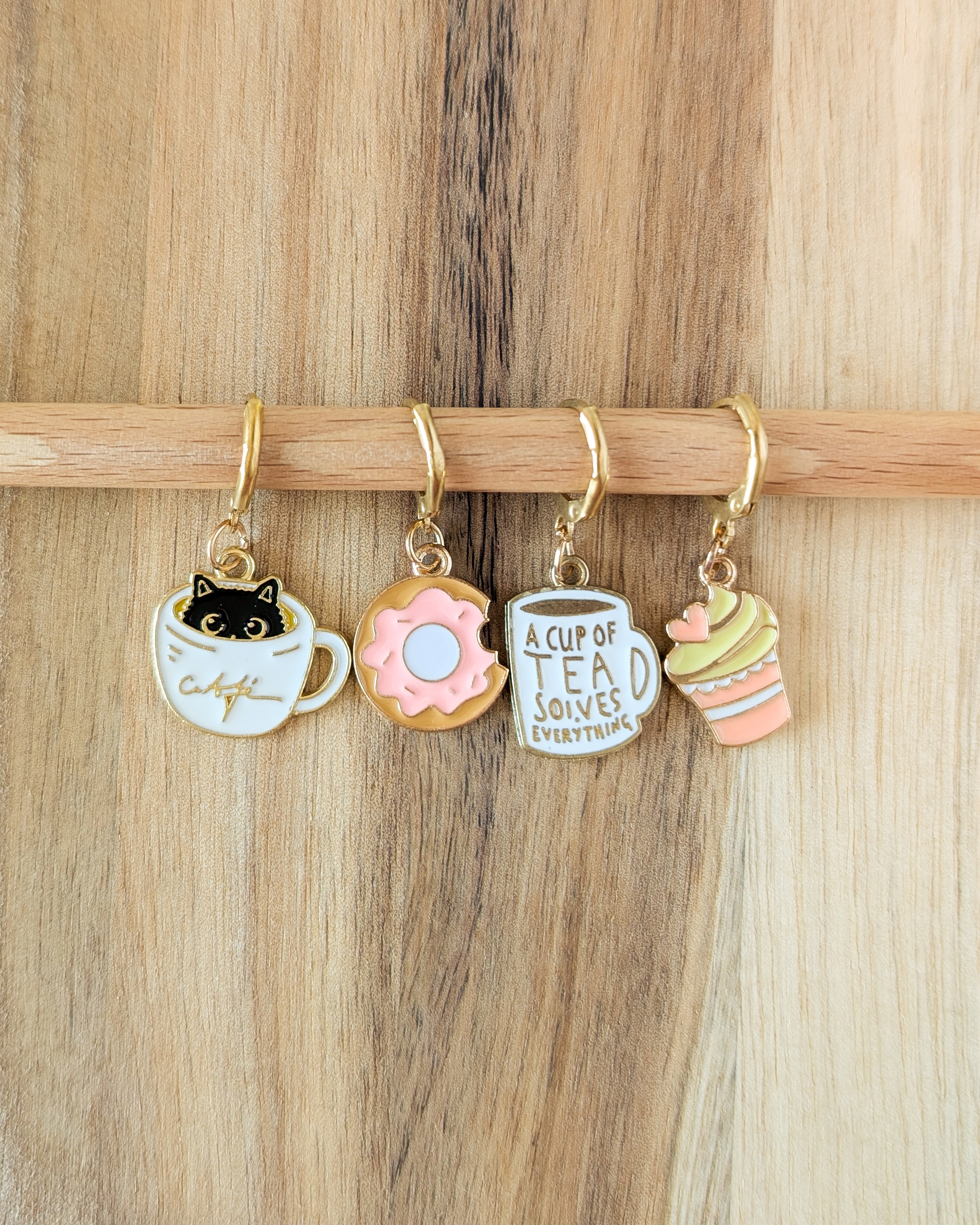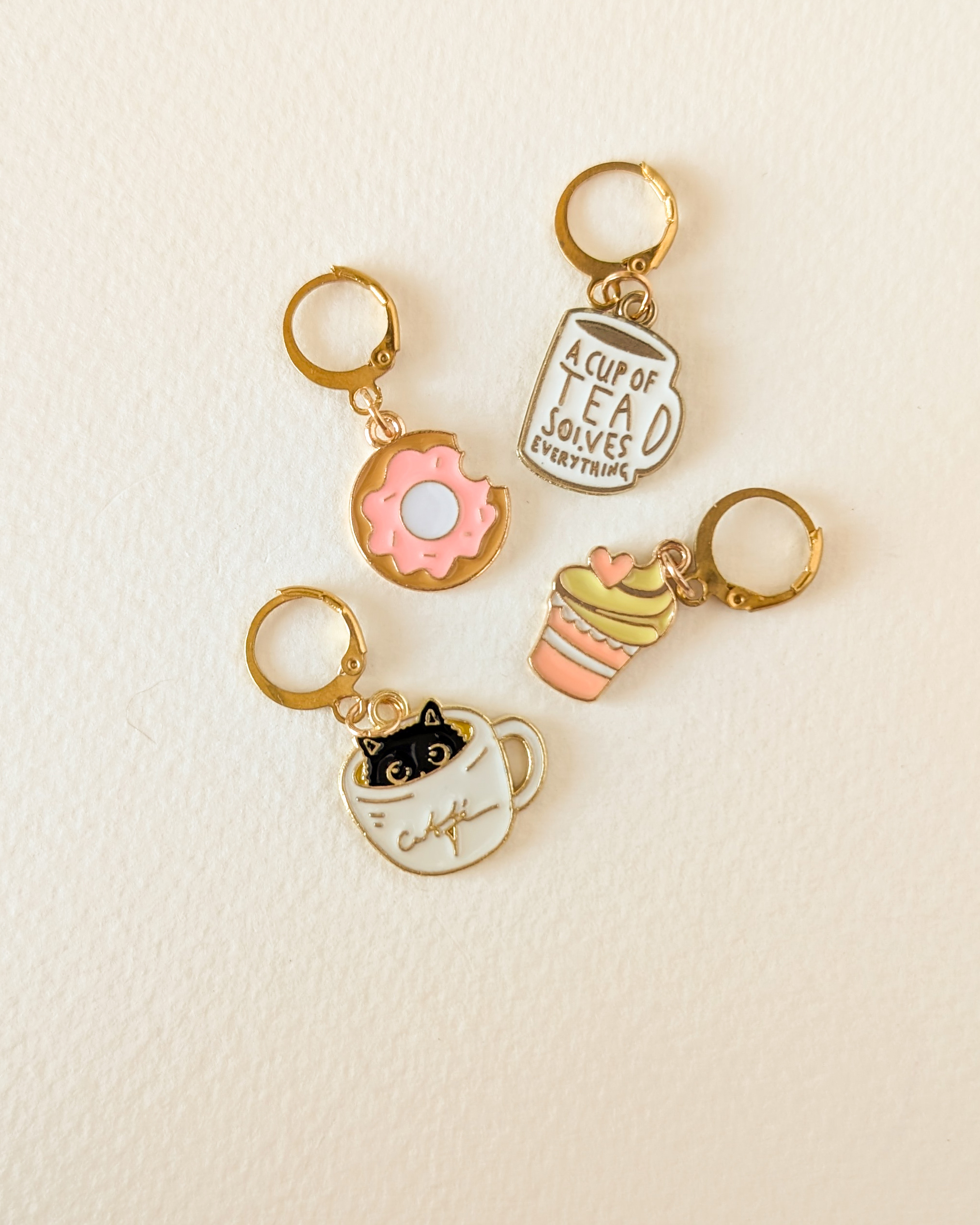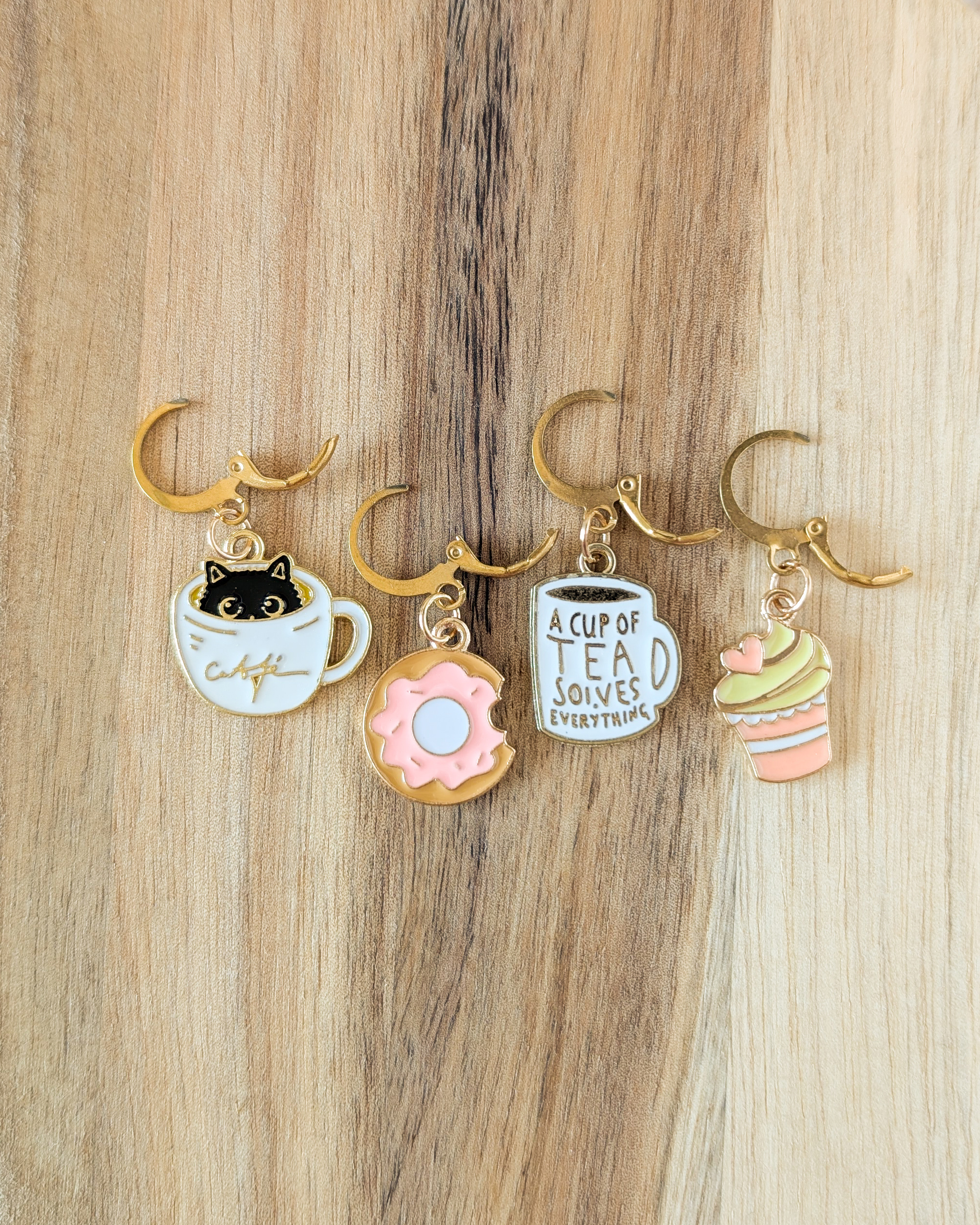 Le lot Pause gouter est composé de 4 anneaux marqueurs qui ajoutent une touche gourmande et sucrée à ton ouvrage.