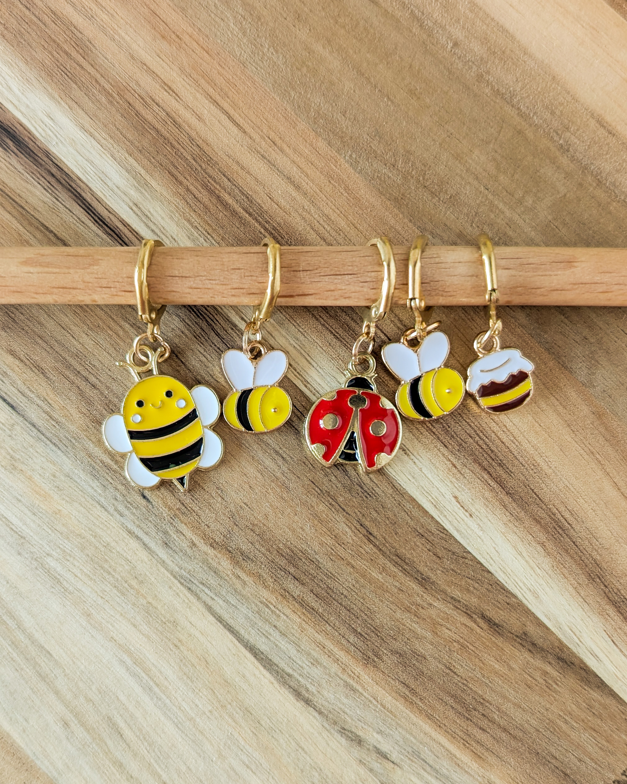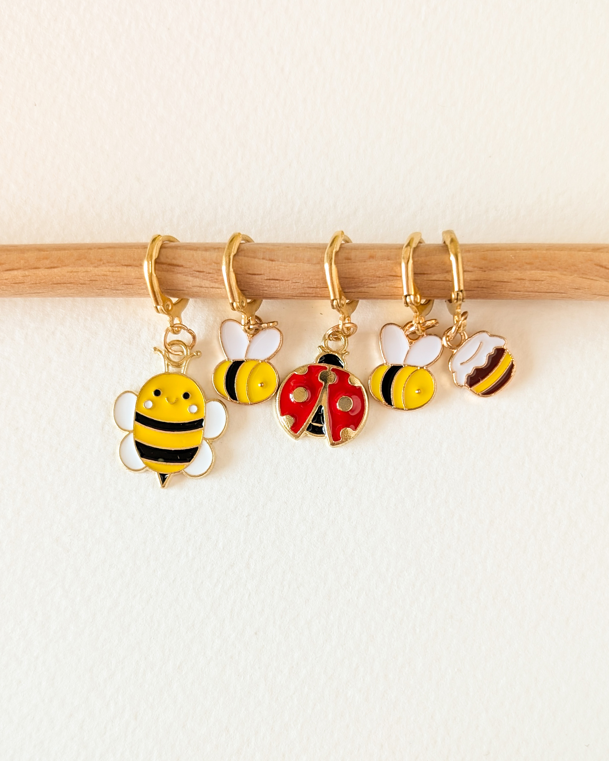 Le lot Bee happy est composé de 5 anneaux marqueurs qui ajoutent une touche printanière à ton ouvrage.