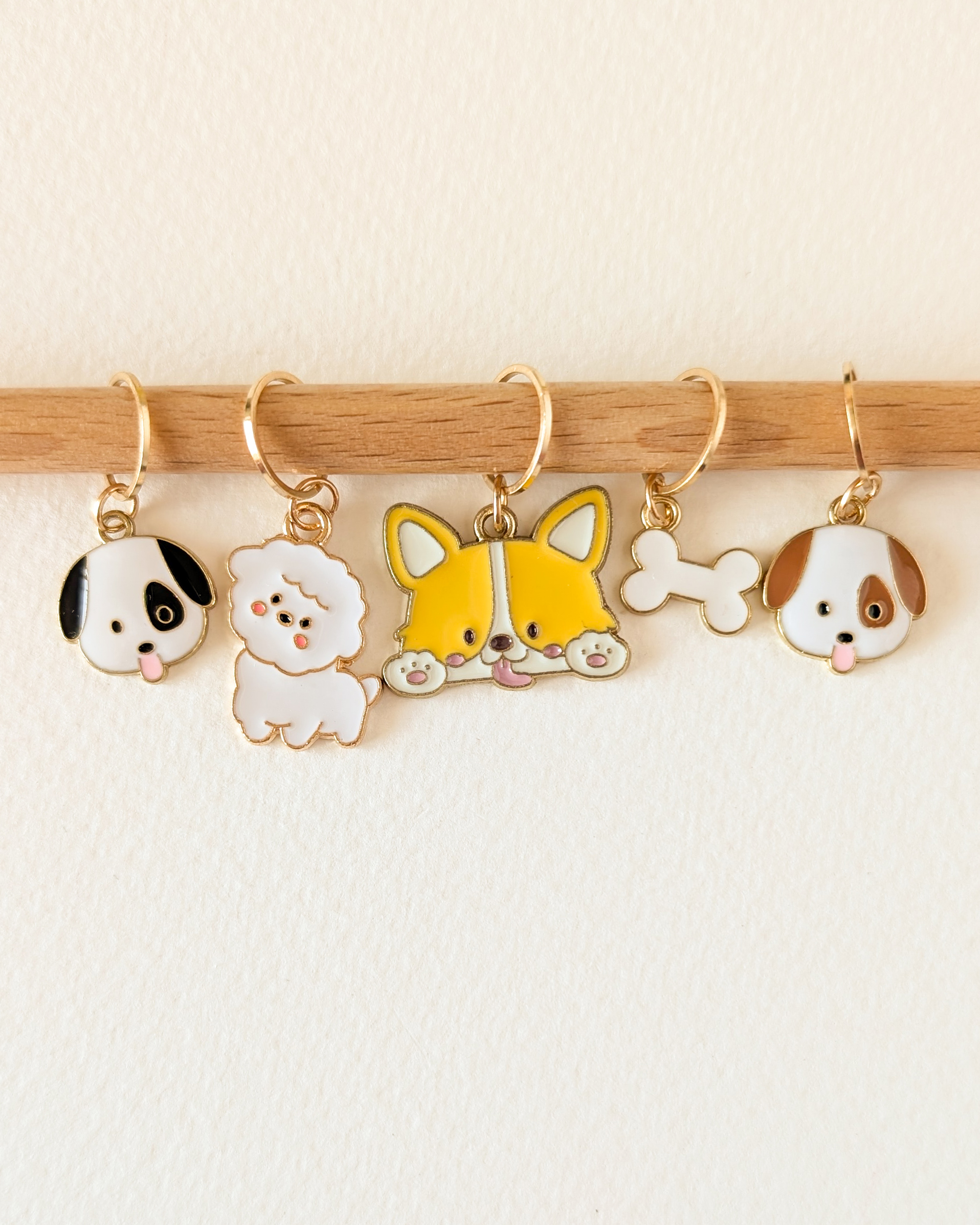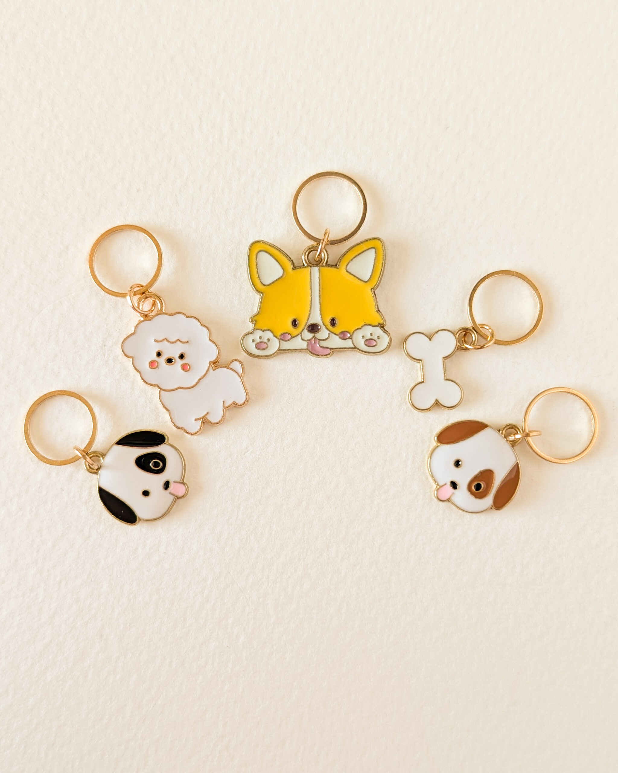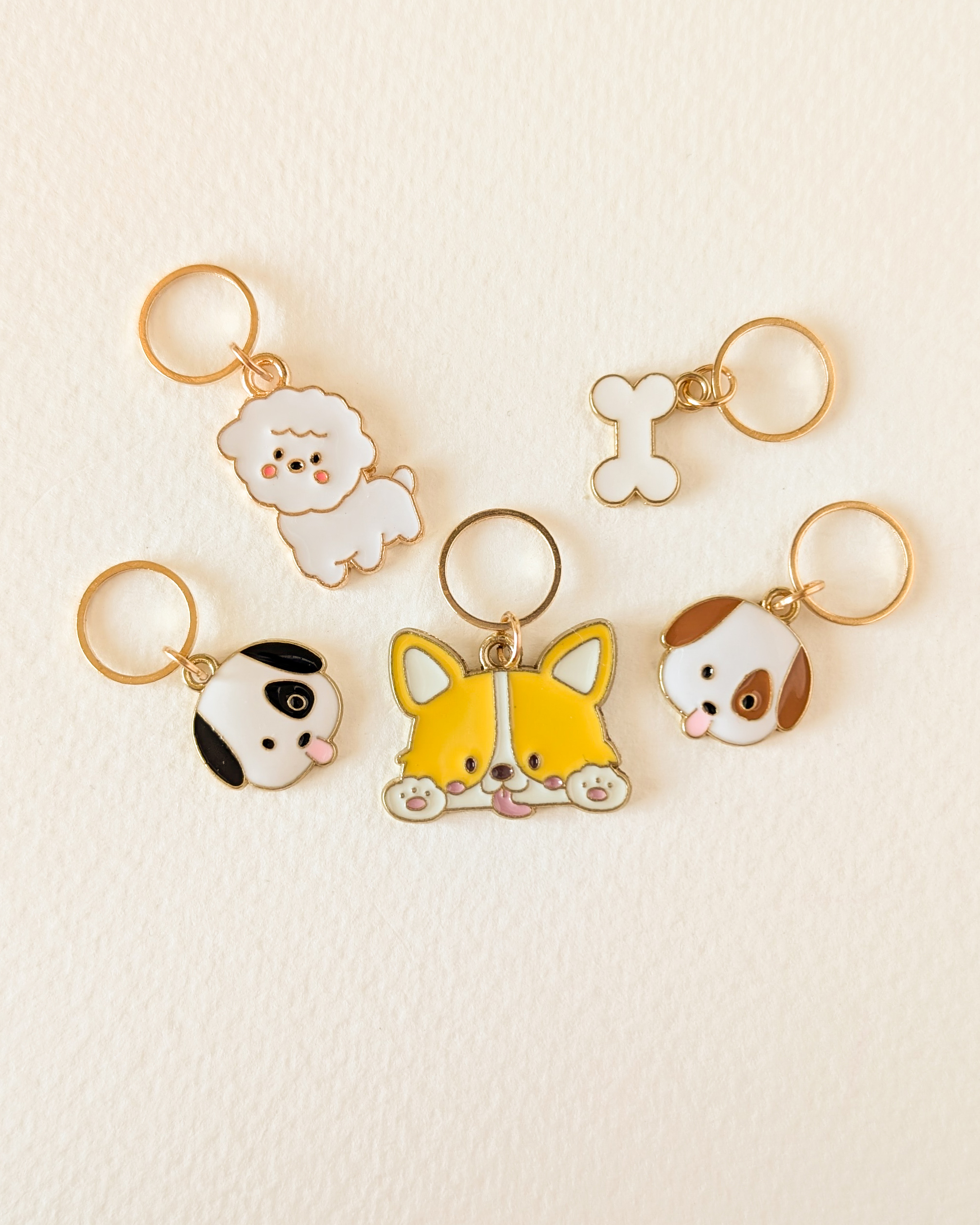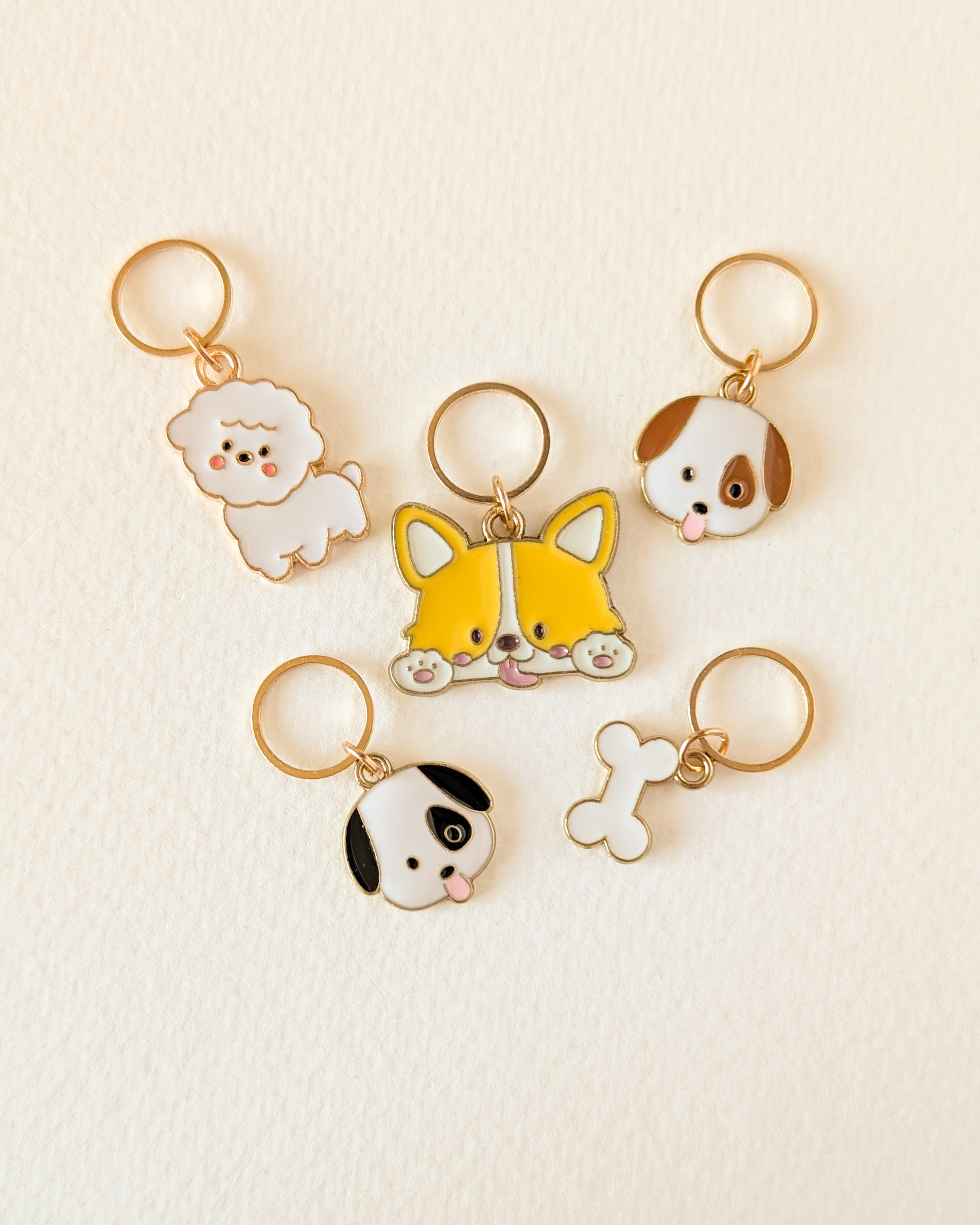 Le lot Petits chiens #1 est composé de 5 anneaux marqueurs qui ajoutent une touche canine à tes en-cours.