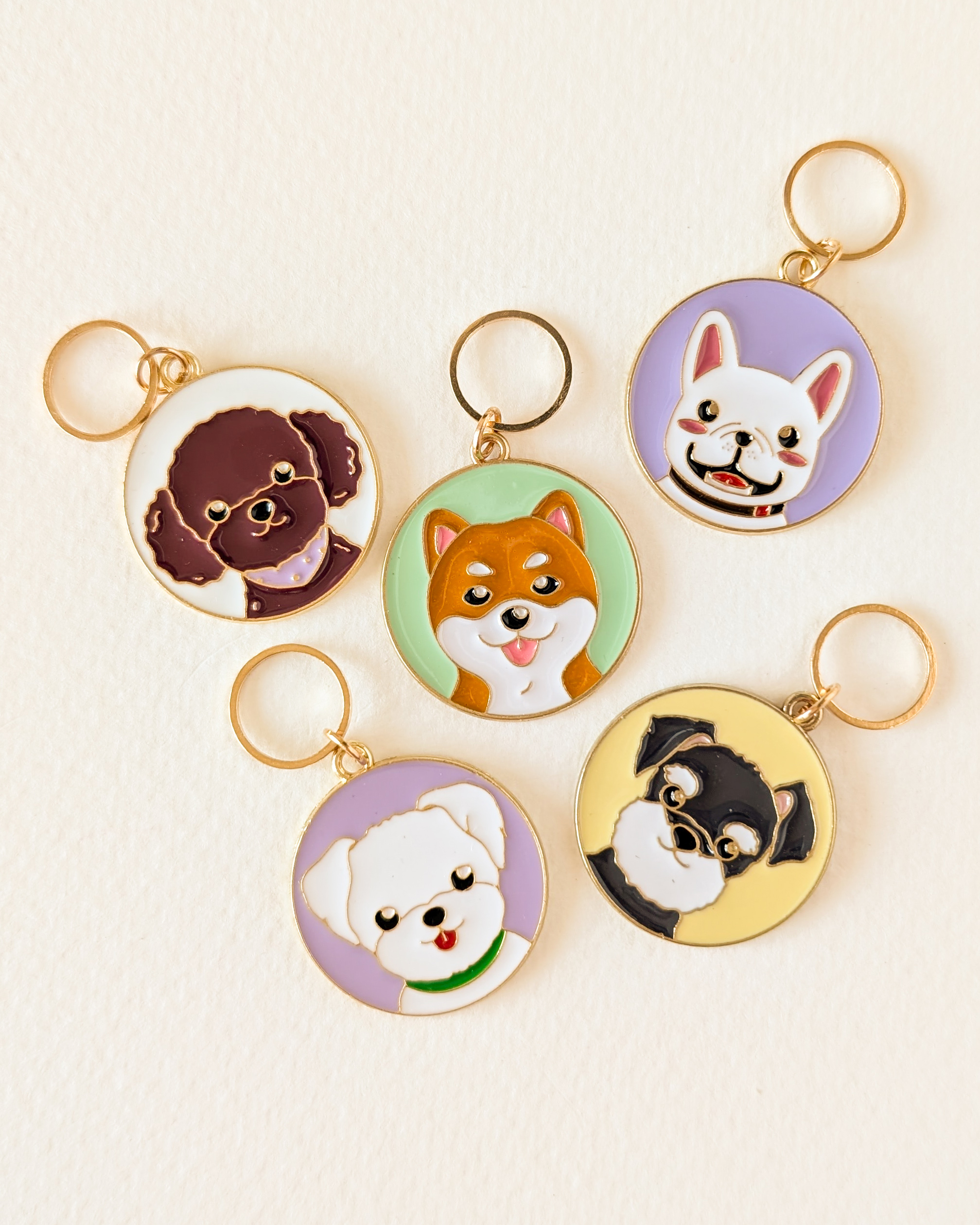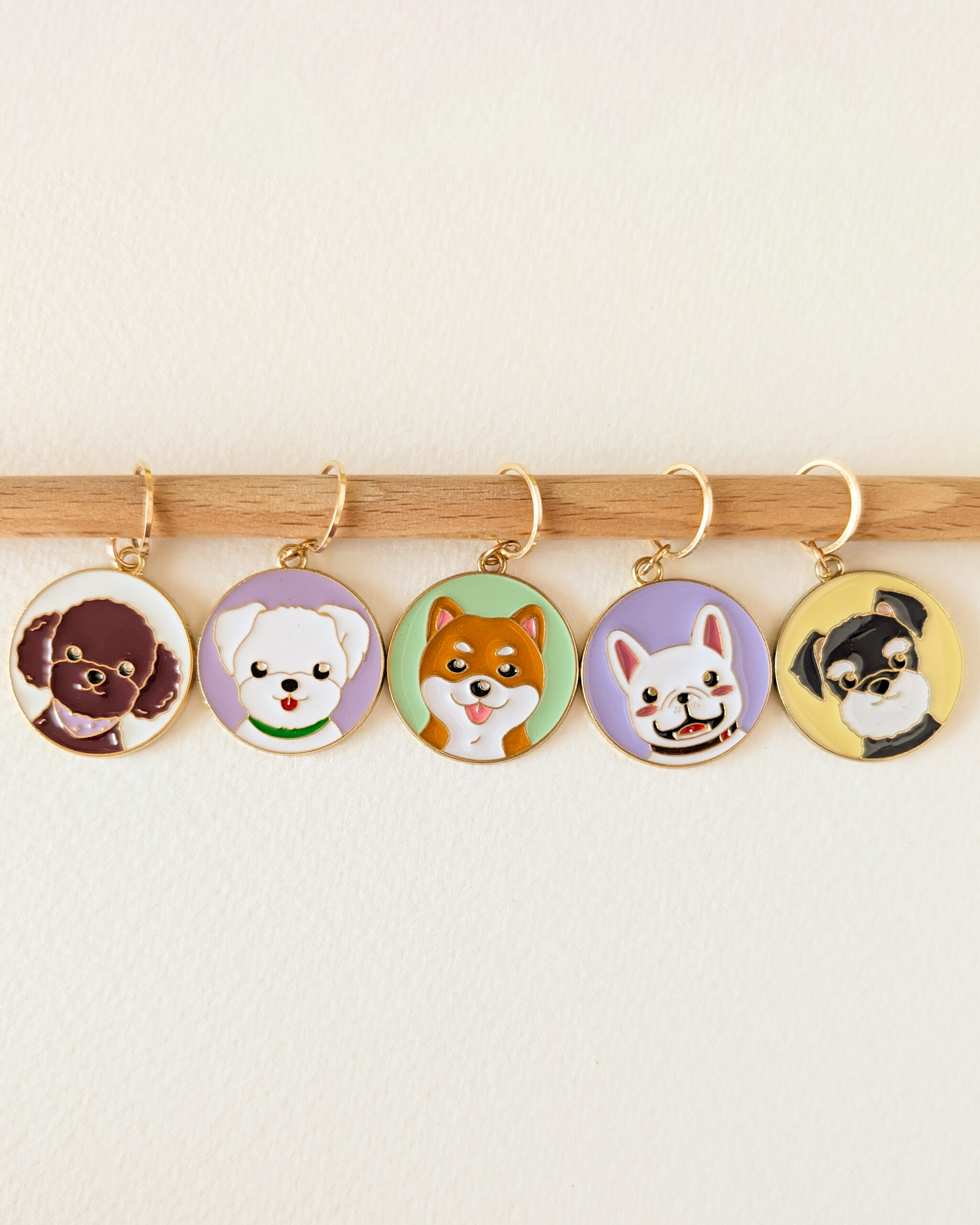 Le lot Petits chiens #3 est composé de 5 anneaux marqueurs qui ajoutent une touche canine à tes en-cours.